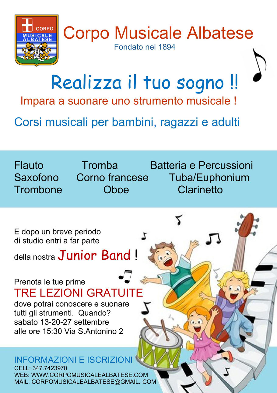 inviando una mail a corpomusicalealbatese@gmail.com